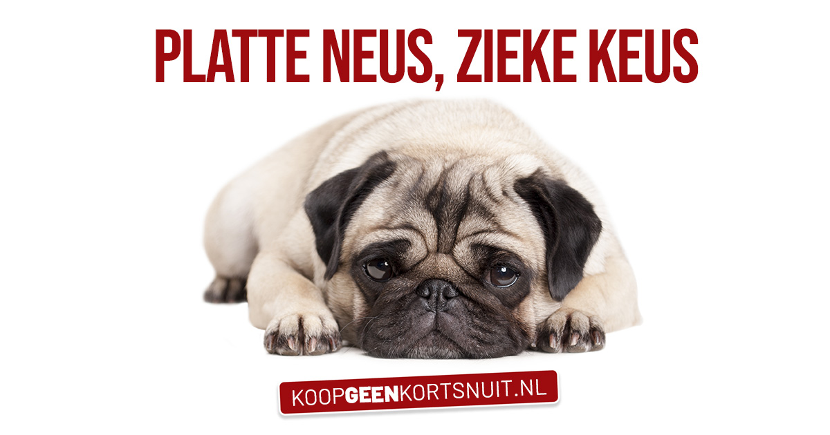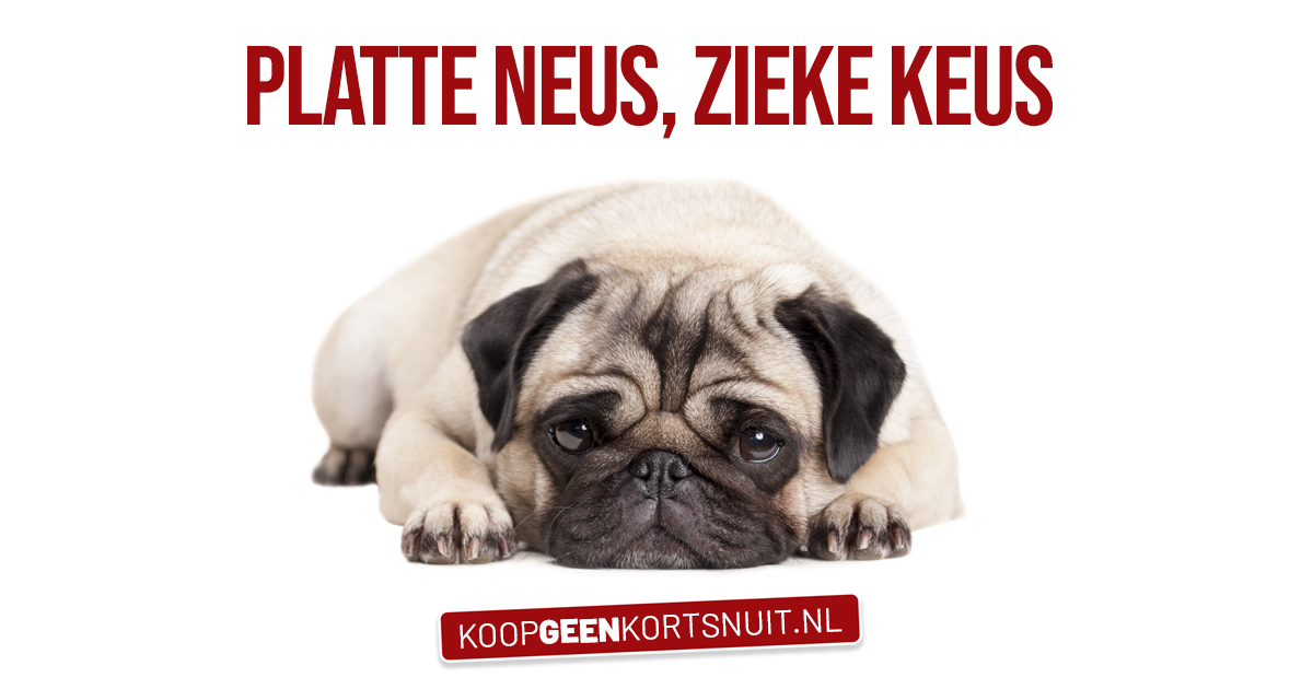 Honden met een korte snuit, zoals de mopshond en de Franse bulldog, lijden onder hun extreme uiterlijk. Samen met de Hondenbescherming, Sophia-Vereeniging, DierenLot, vele andere organisaties en dierenartsen voeren we campagne om consumenten te informeren over het leed van kortsnuitige huisdieren: Koop geen kortsnuit! Kijk voor meer informatie op de speciale website.