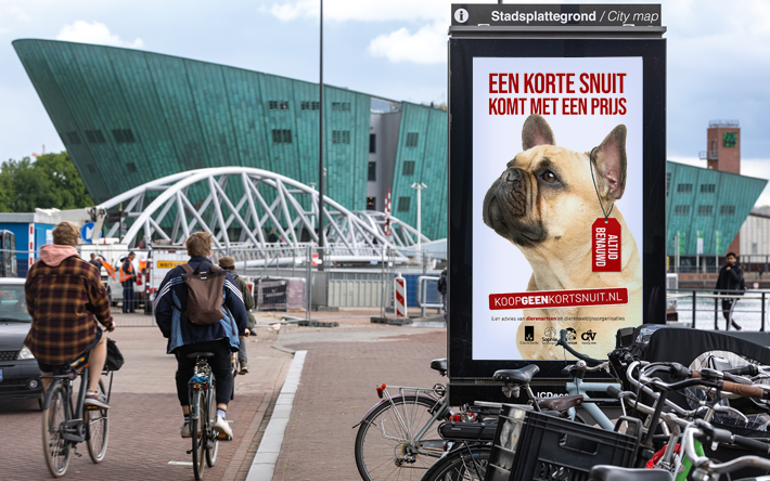 Met posters op straat, online advertenties en een campagnewebsite maken we mensen bewust van de problemen rondom kortsnuitige huisdieren.