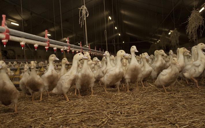 Maar in de ondiepe watergoot kunnen ze snebberen, poetsen, badderen, hun volledige lichaam onderdompelen en zelfs een beetje zwemmen. De watergoten staan op een verhoogd platform op een kunststof roostervloer, die van de rest van de stal is afgeschermd door middel van houten schotten. Zo wordt voorkomen dat het strooisel waarop de eenden leven, nat wordt. Voor stallen die al een waterafvoer hadden, was deze overeenkomst sinds juni 2016 al bindend. Voor stallen die nog voor een afvoersysteem moesten zorgen, gelden de regels sinds 31 december 2016. Bravo Duitsland!