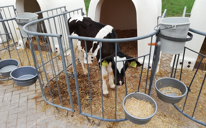 De eerste twee weken van hun leven brengen de kalfjes door in volledige afzondering, in een eenlingbox of een kalveriglo. Hun afweer is nog zo zwak dat ze niet bij andere kalveren geplaatst kunnen worden vanwege het infectierisico.