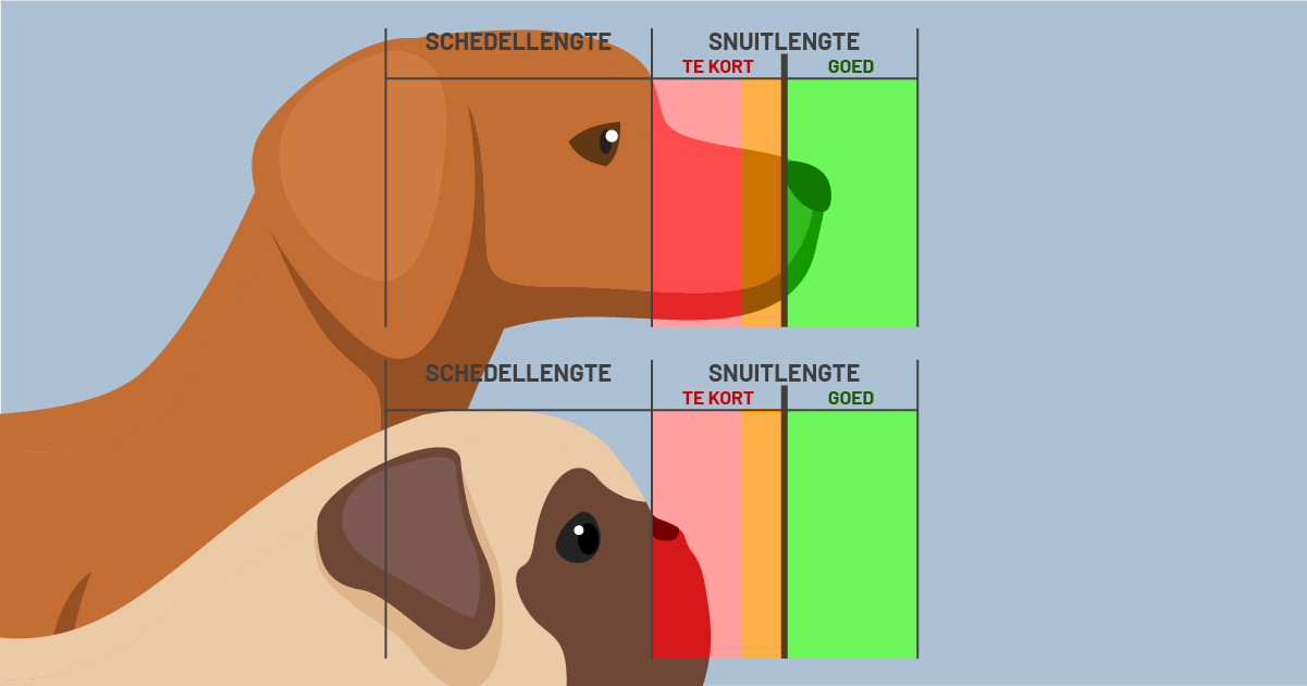 Het fokken van honden die last hebben van een te korte snuit is bij wet verboden, of het nu om rashonden of kruisingen gaat. Tot voor kort was het lastig om hierop te handhaven, want er waren geen duidelijke criteria. Daarom heeft Universiteit Utrecht het stoplichtmodel voorgesteld: bij rood licht mag er niet worden gefokt met een hond; staat het licht op oranje, dan mag er met de hond worden gefokt als álle andere kenmerken goed zijn; bij groen licht mag er worden gefokt, tenzij er andere kenmerken op rood staan.