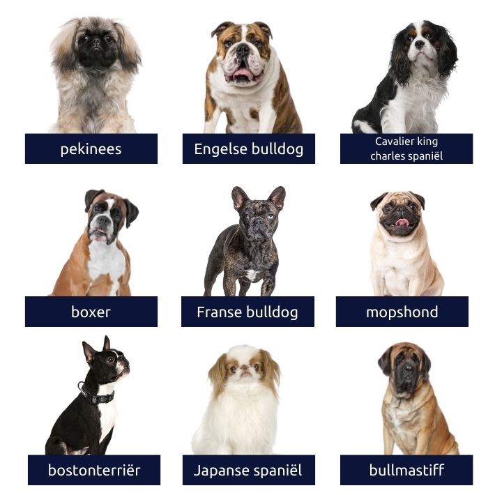 Rassen met een te korte snuit zijn onder andere: