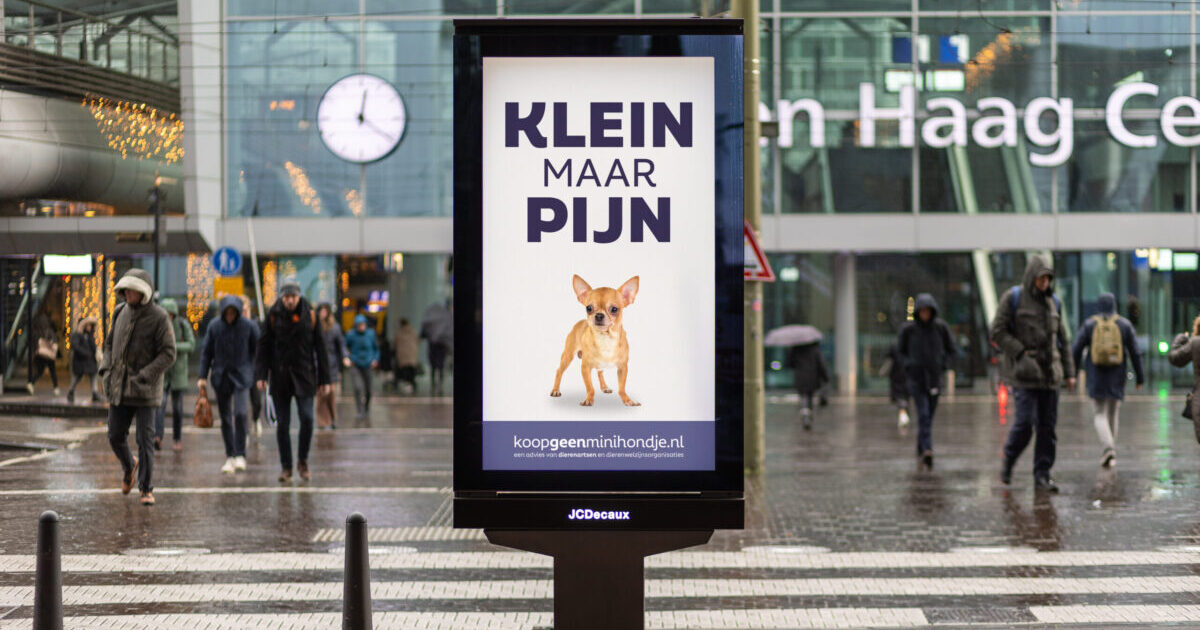 Dierenartsen en dierenwelzijnsorganisaties starten de landelijke campagne ‘Klein maar pijn’ over het onzichtbare lijden van populaire minihondjes. Elke dag treffen dierenartsen minihondjes met ernstige pijn- en stressklachten op hun behandeltafel. “Koop geen minihondje”, luidt hun dringende advies maar kies voor een blij en gezond dier, met een normaal formaat.